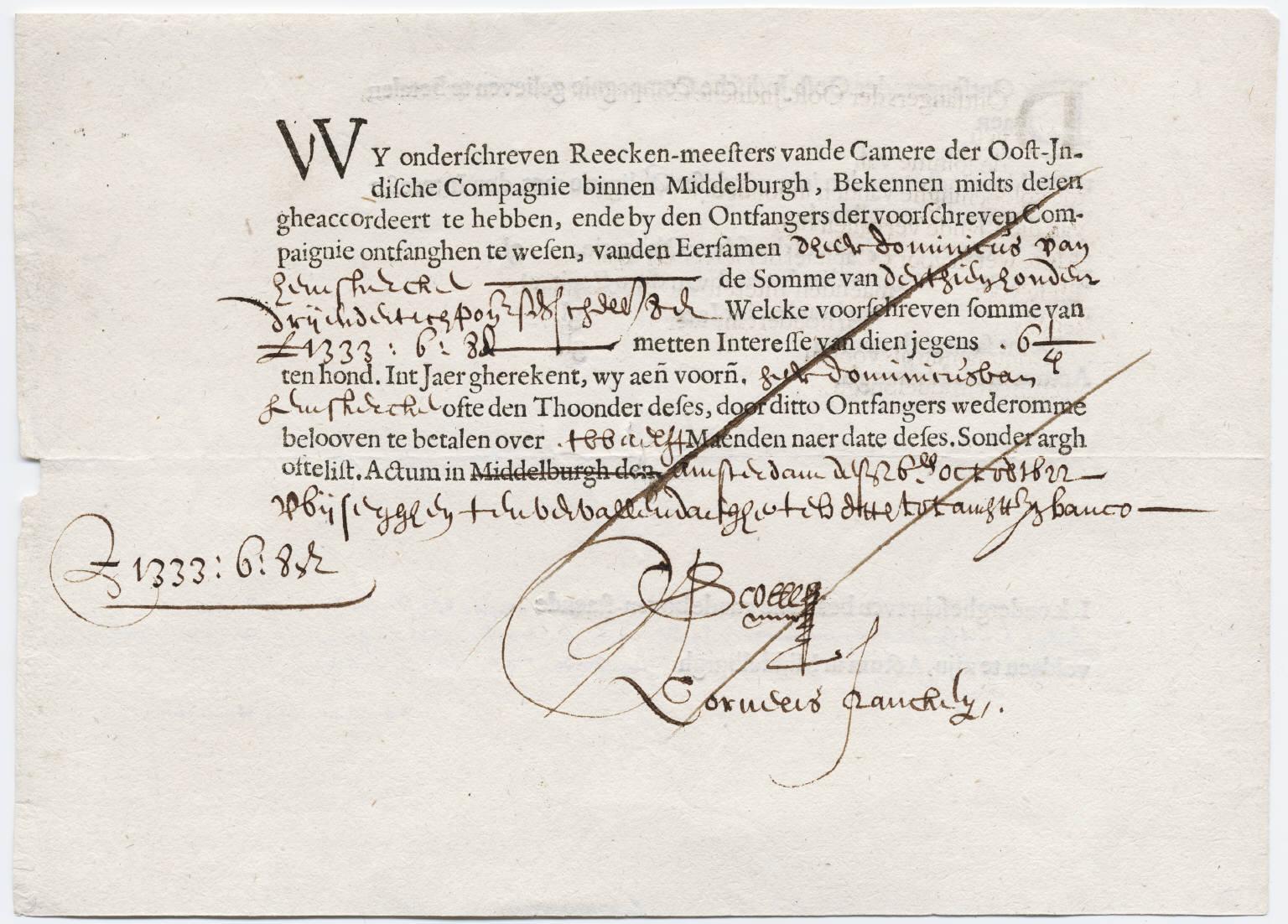 The first corporate bond of The Dutch East India Company in 1623.